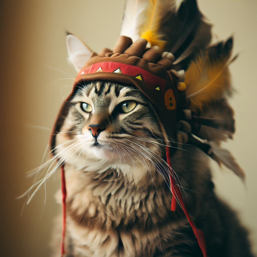 Lustiges Katzenbild mit dem Titel "Katze als Indianer".