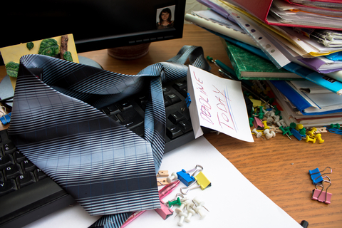 Bild zeigt einen etwas unordentlichen Schreibtisch.