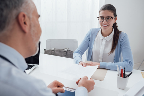 Bild zeigt eine Frau bei einem Bewerbungsgespräch.