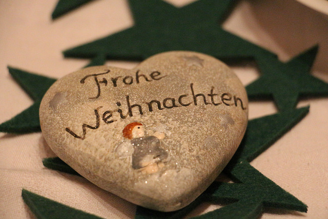 Bild zeigt ein Dekoherz, welches "Frohe Weihnachten" wünscht.