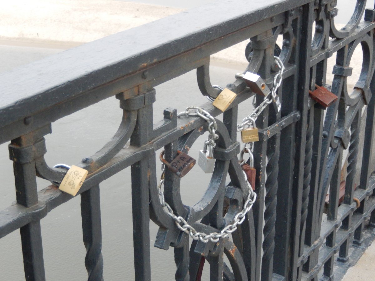 Bild zeigt verschiedene Liebesschlösser an einer Brücke in Warschau.