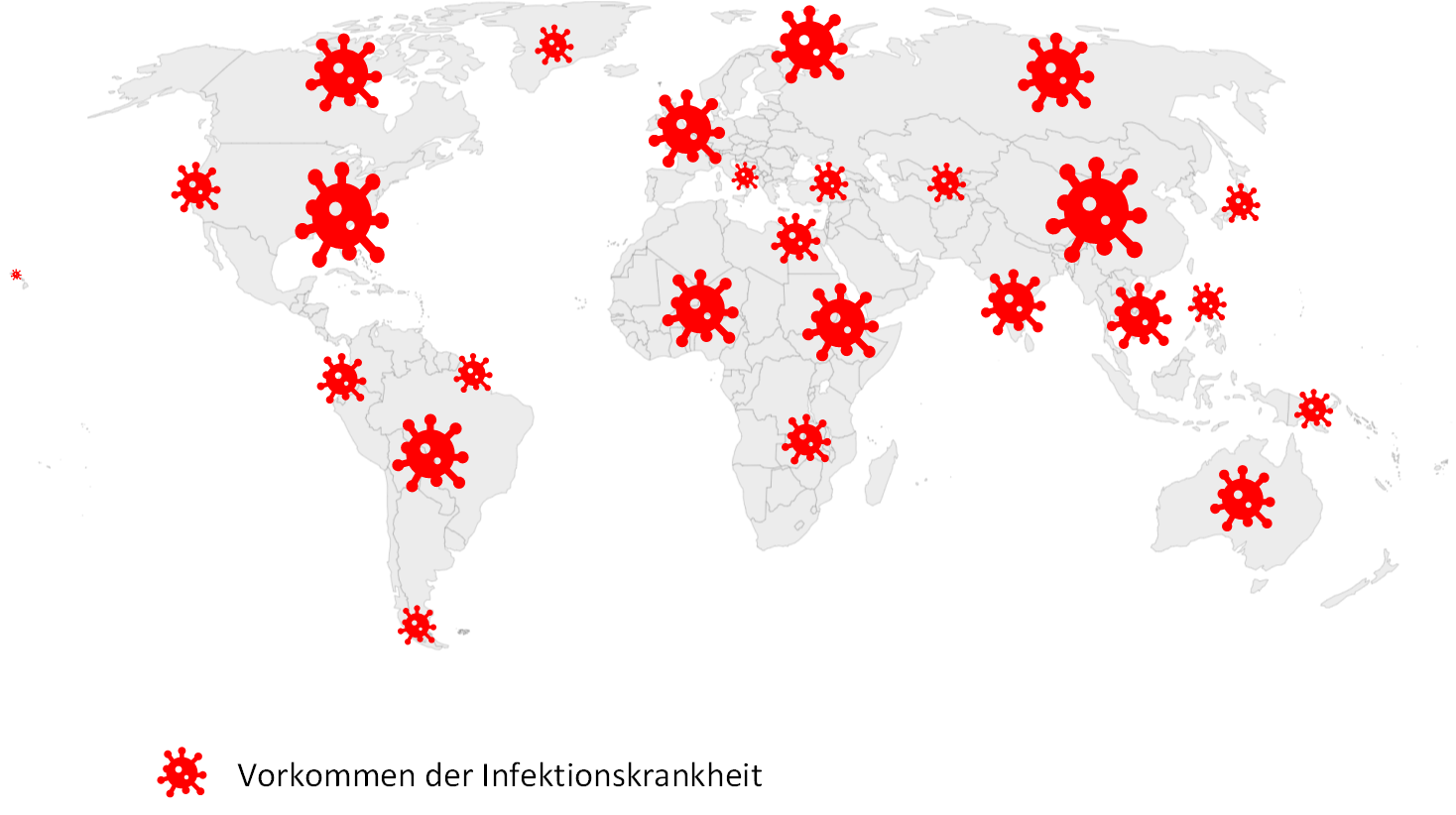 Bild zeigt eine Erklärung zum medizinischen Begriff Pandemie. Kartenmaterial bereitgestellt von https://simplemaps.com/resources/svg-world.
