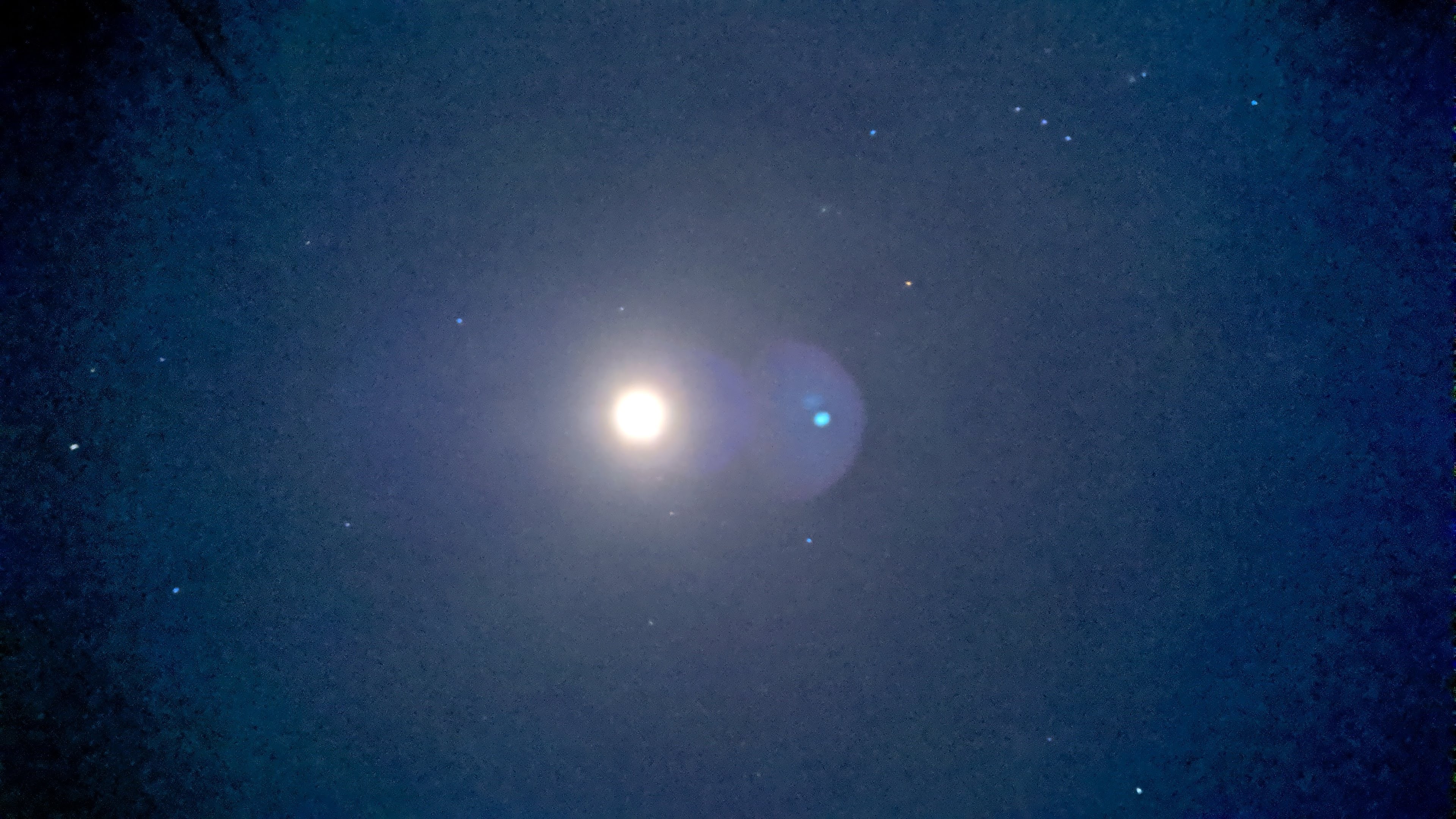 Bild zeigt die Sonne in der Nacht von der Erde aus fotografiert. Mit hohem ISO-Wert.