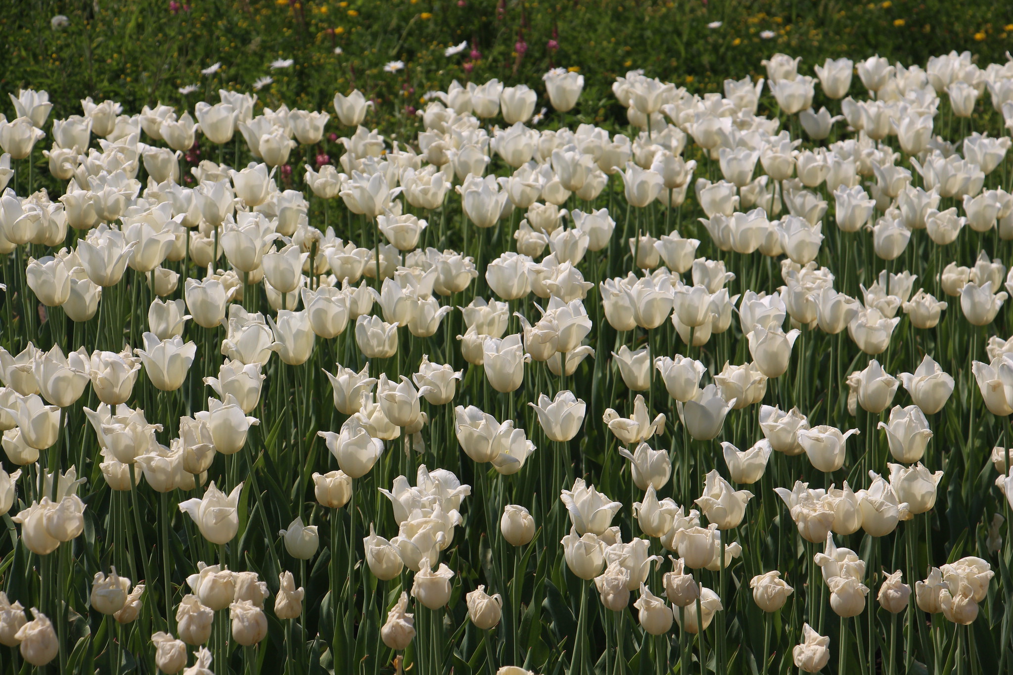 Bild zeigt weiße Tulpen auf der Bundesgartenschau in Würzburg.