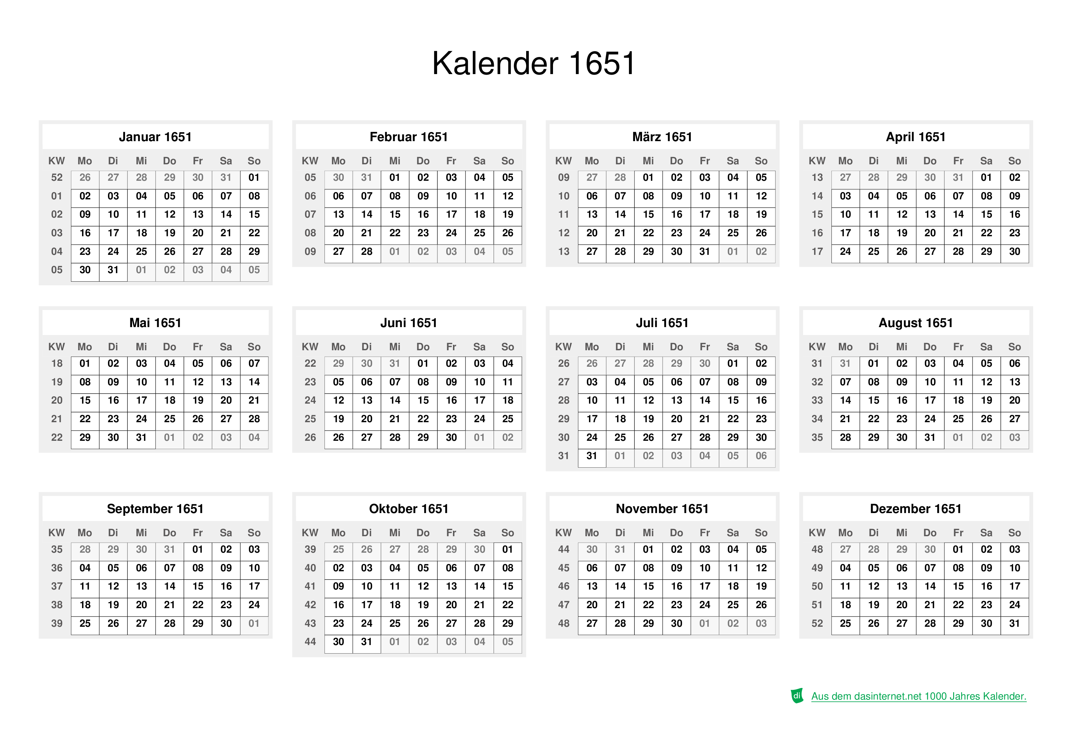 - Name: Kalender für das Jahr 1651 im PNG-Format