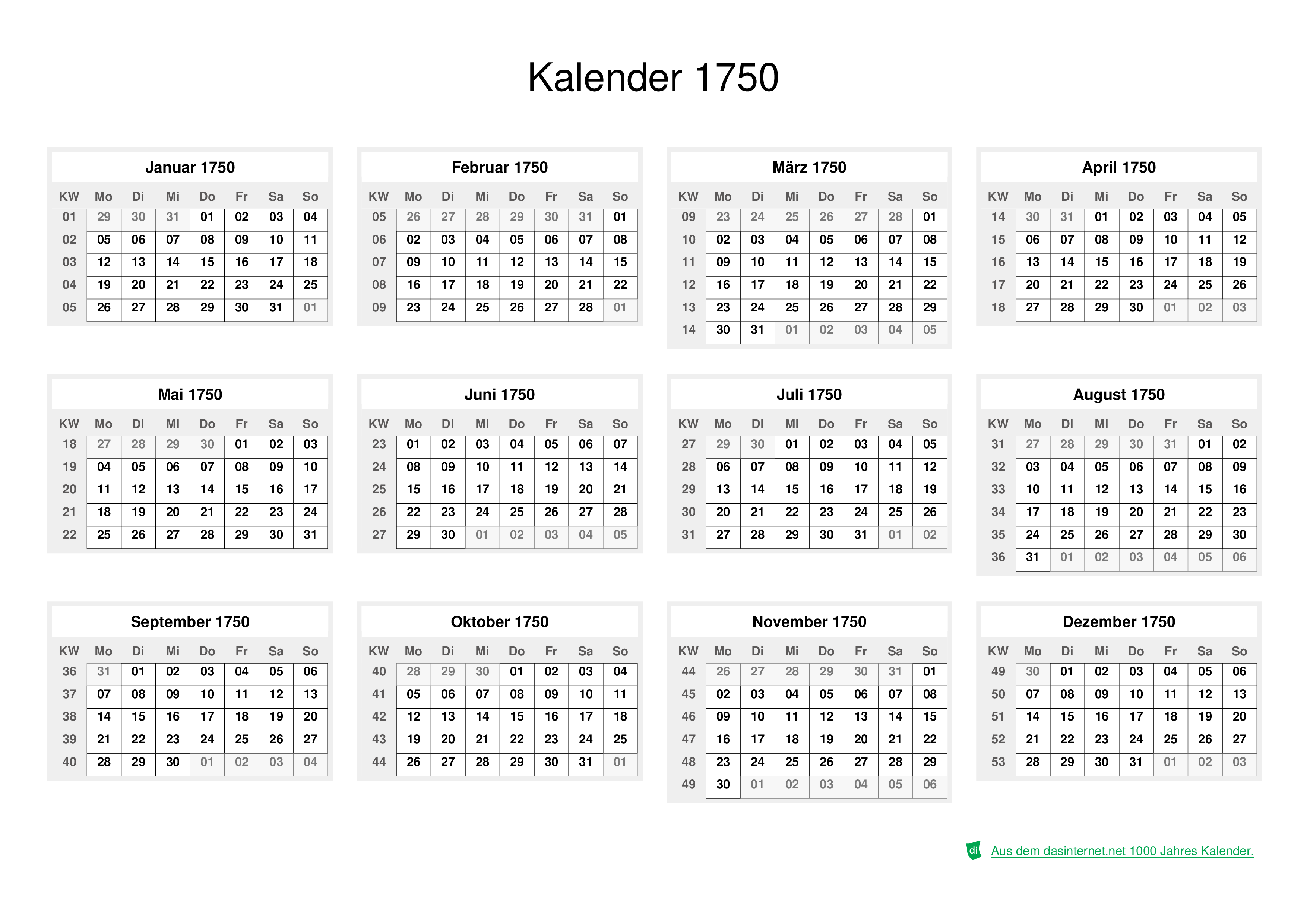 - Name: Kalender für das Jahr 1750 im PNG-Format