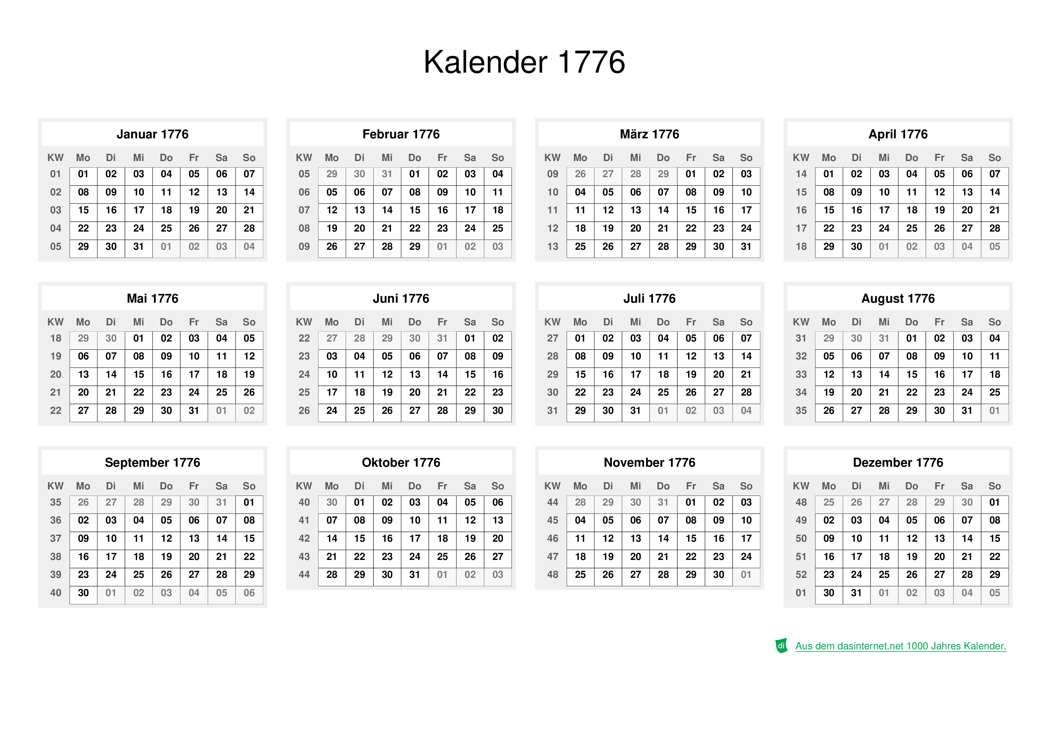 - Name: Kalender für das Jahr 1776 im PNG-Format