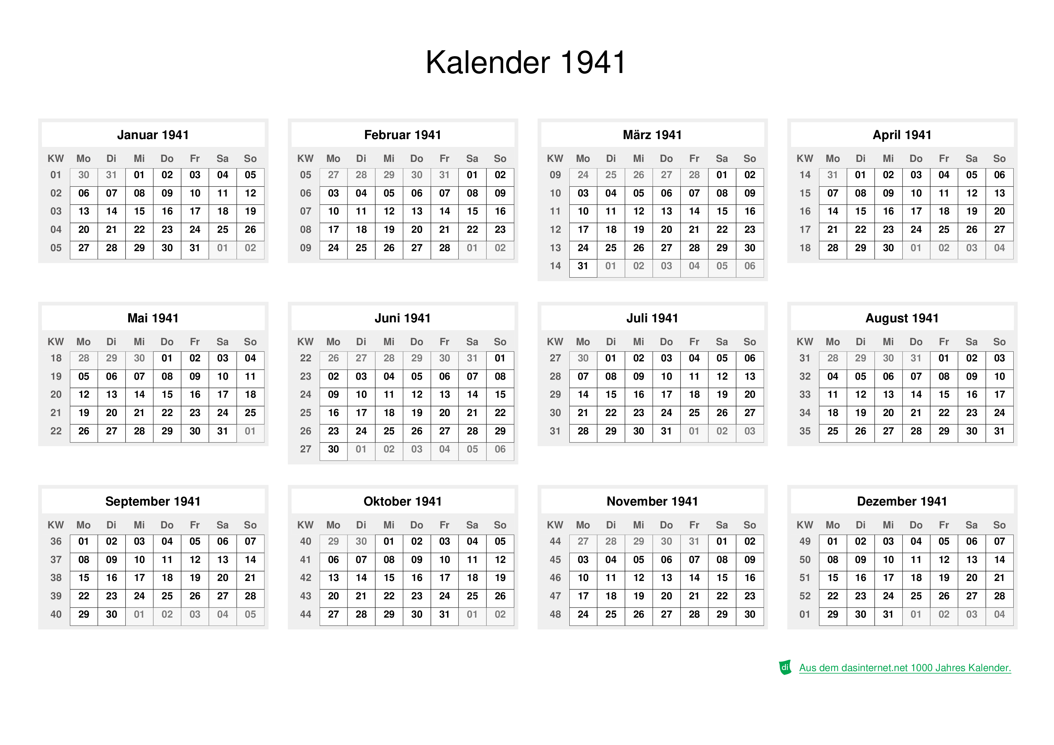 - Name: Kalender für das Jahr 1941 im PNG-Format