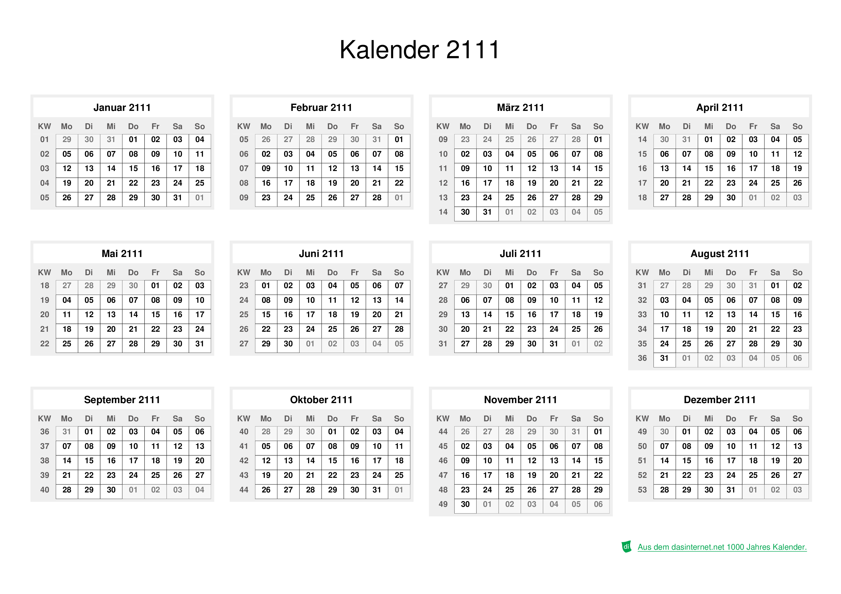 - Name: Kalender für das Jahr 2111 im PNG-Format