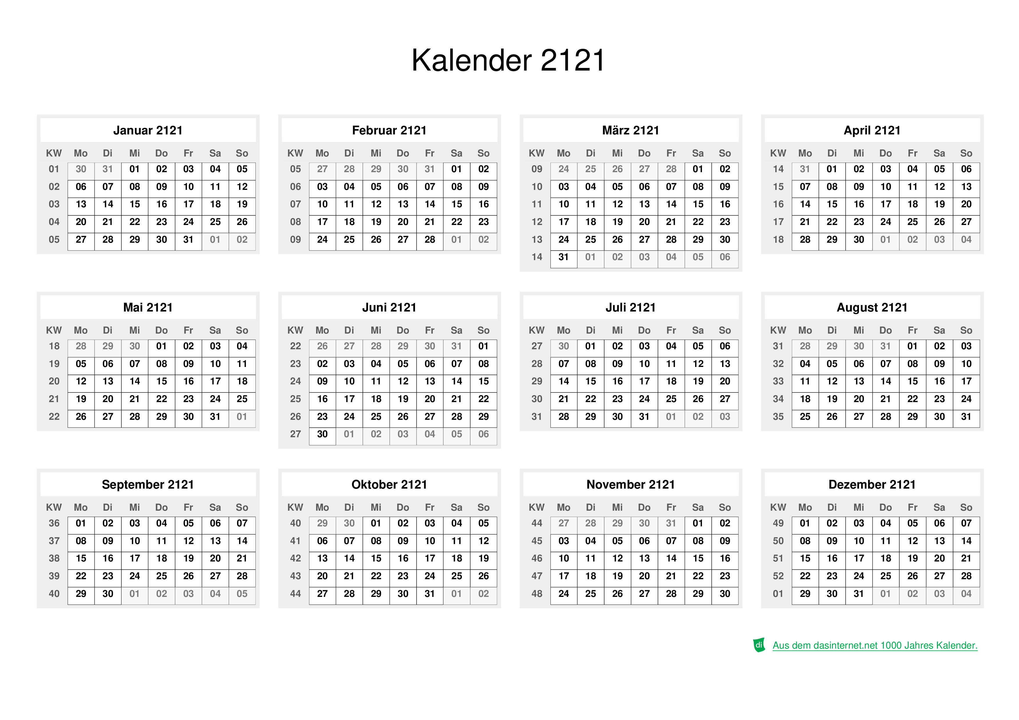 - Name: Kalender für das Jahr 2121 im PNG-Format