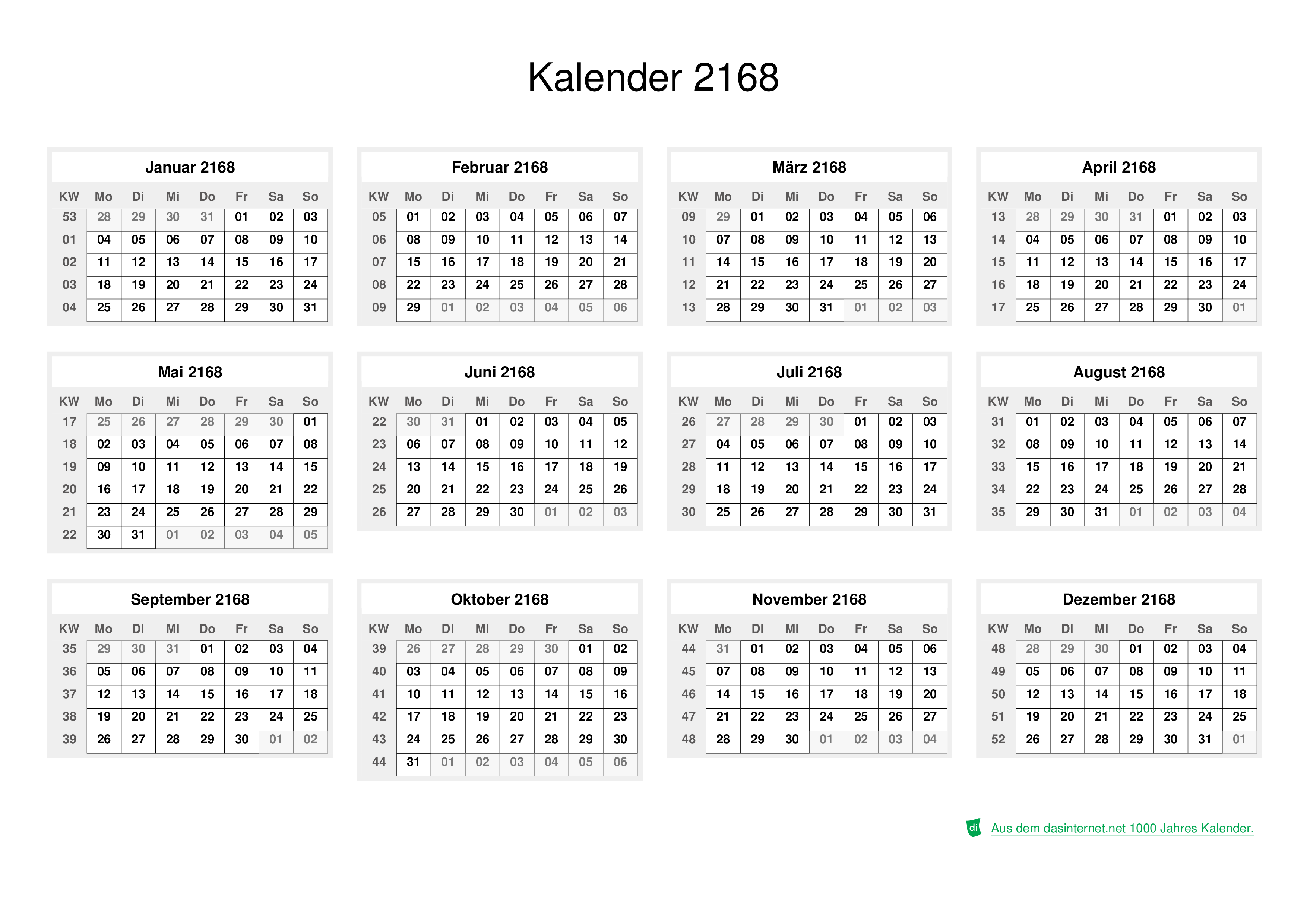 - Name: Kalender für das Jahr 2168 im PNG-Format