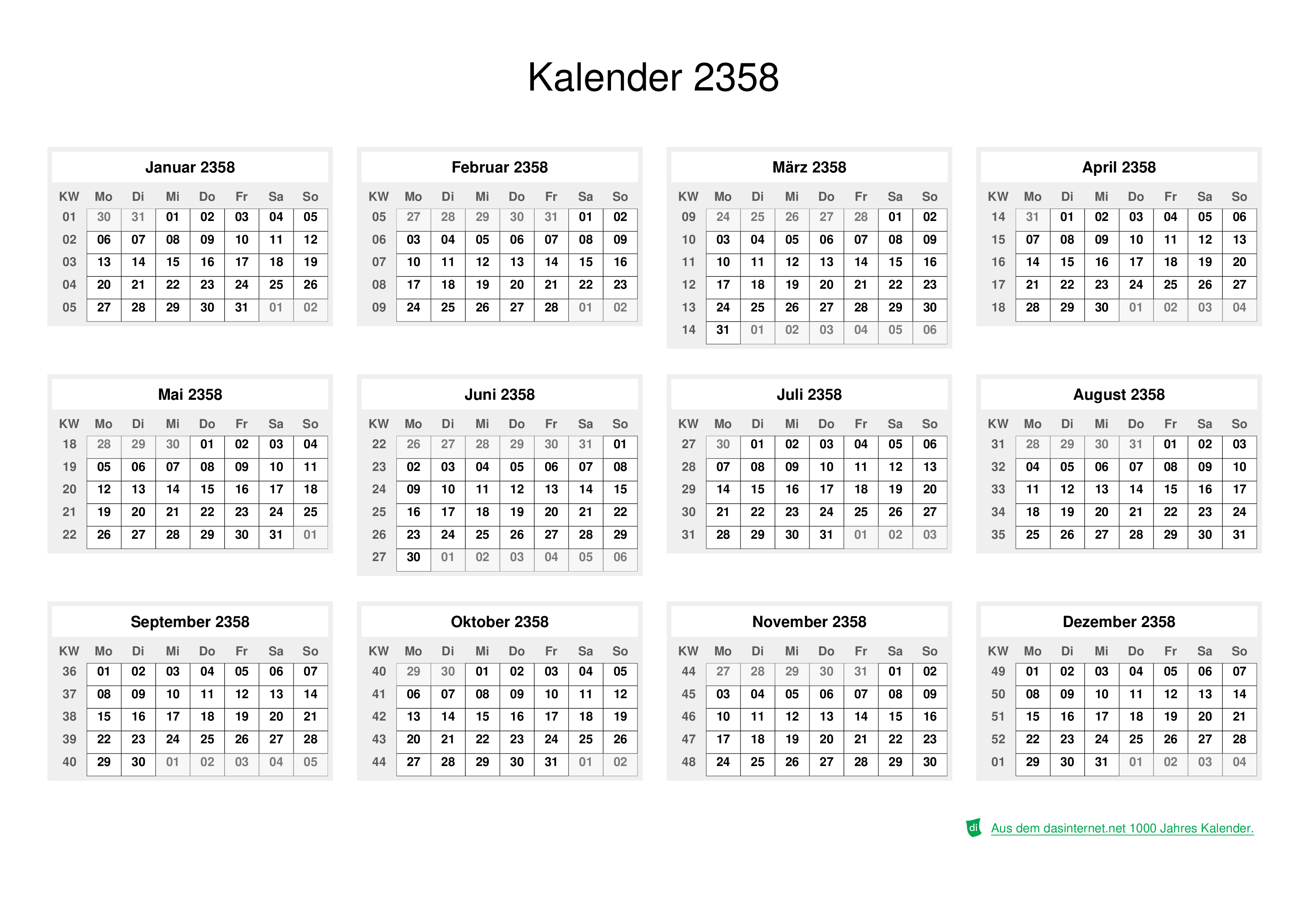 - Name: Kalender für das Jahr 2358 im PNG-Format