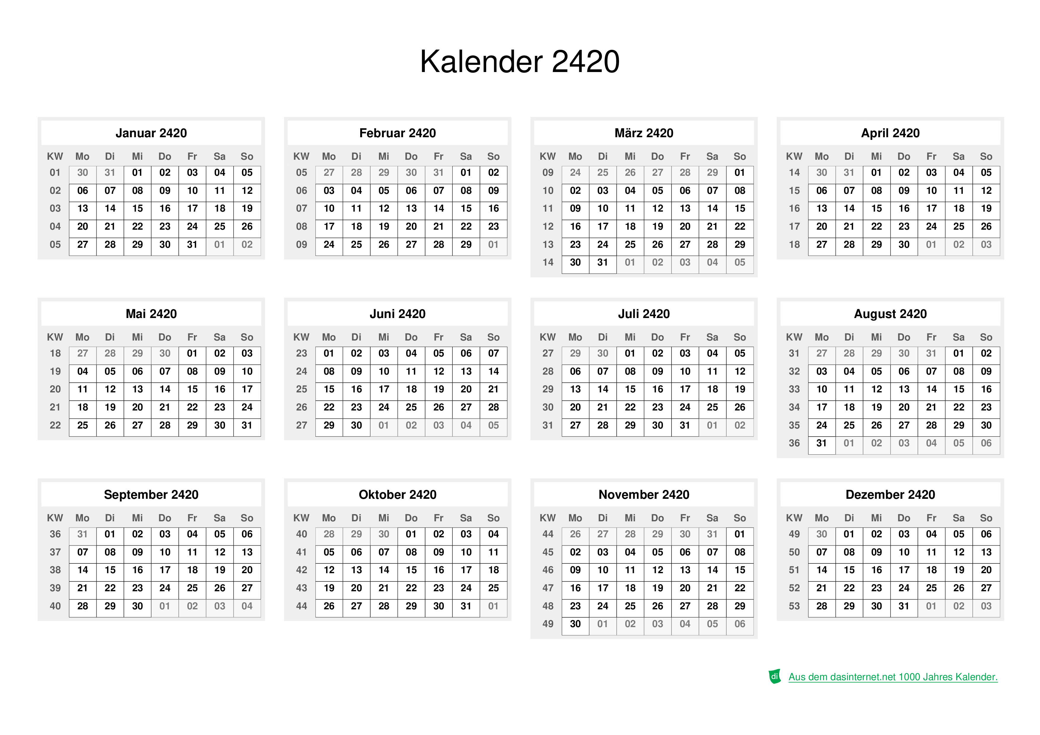 - Name: Kalender für das Jahr 2420 im PNG-Format