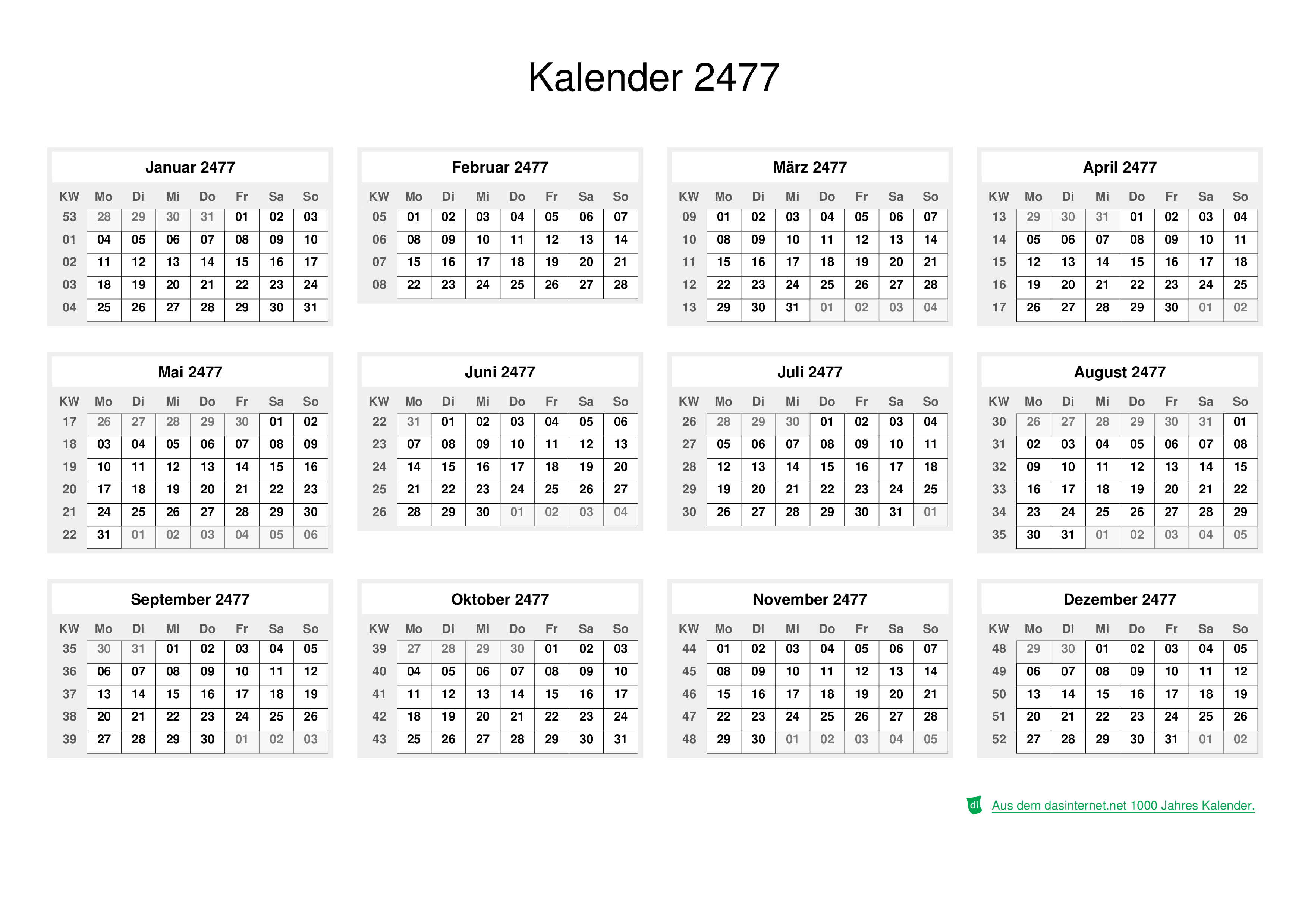 - Name: Kalender für das Jahr 2477 im PNG-Format