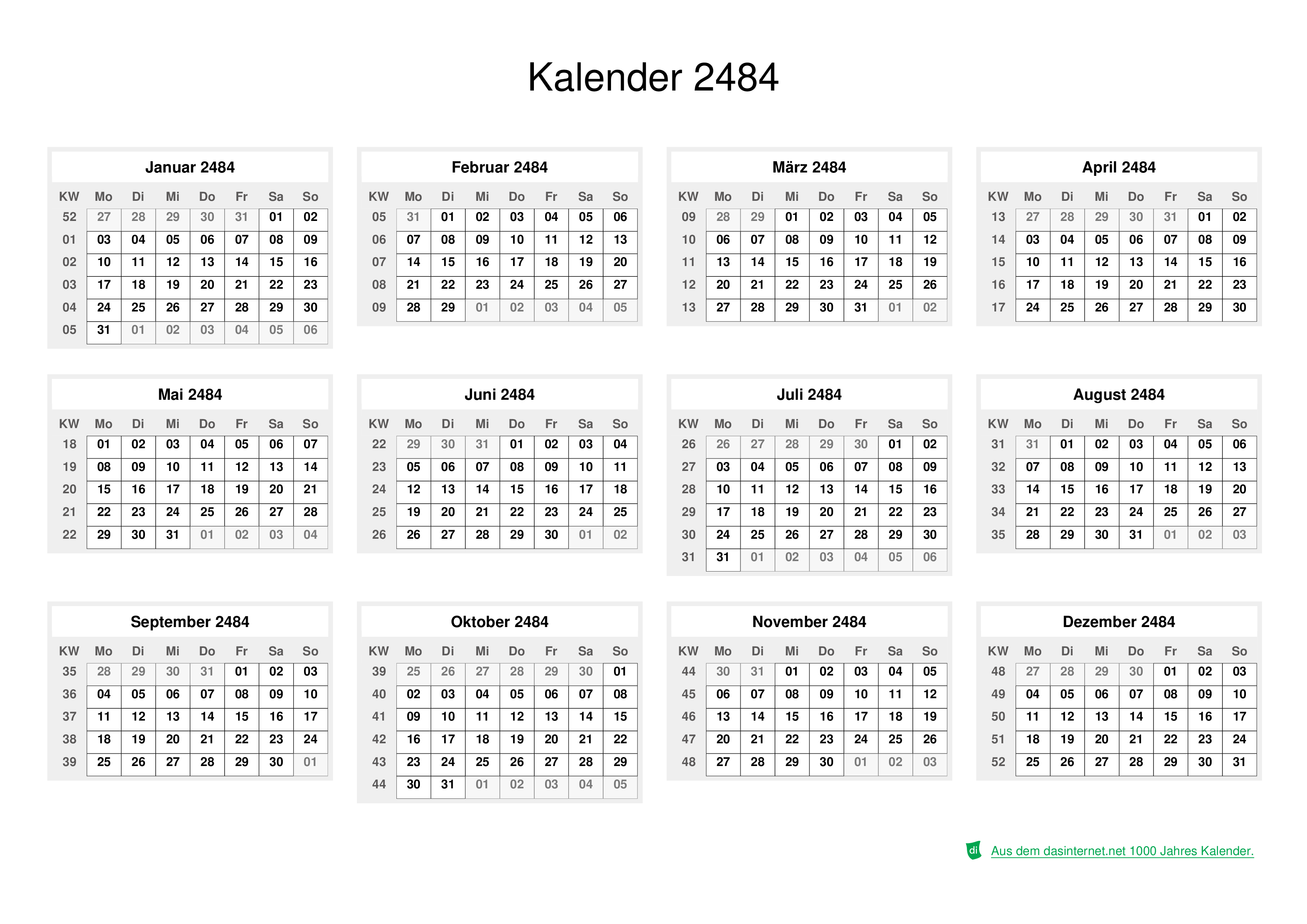 - Name: Kalender für das Jahr 2484 im PNG-Format